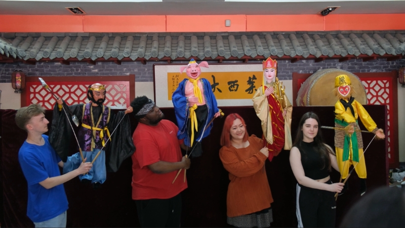 组织中英两国师生一行前往青岛莱西木偶艺术馆,对山东省级非遗项目“莱西木偶戏”进行考察,现场体验了莱西木偶戏的独特魅力。